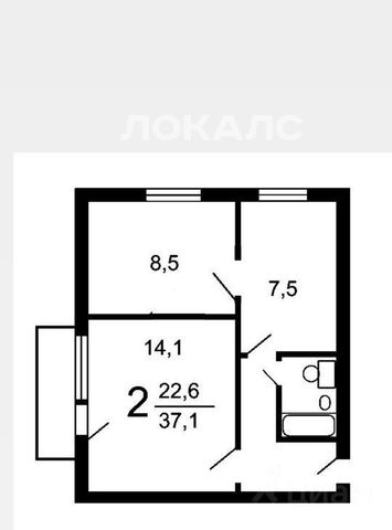 2-к кв. Москва ул. Маршала Чуйкова, 7К2 (37.0 м²)