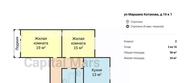 2-к кв. Москва ул. Маршала Катукова, 10К1 (58.0 м²)