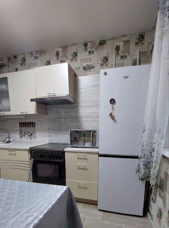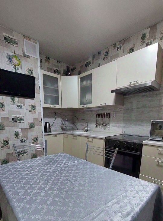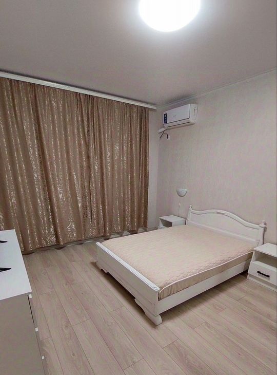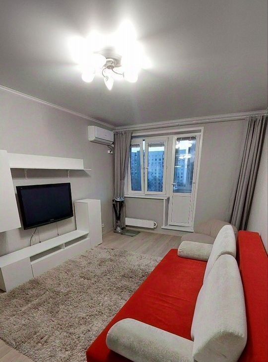 Квартира полностью готова для комфортного проживания: в комнатах и на кухне есть необходимая мебель. Для удобства жильцов установлены кондиционер, холодильник, телевизор и стиральная машина. Ванная комната оборудована ванной, санузел отдельный. Также имеется балкон, где можно наслаждаться свежим воздухом.