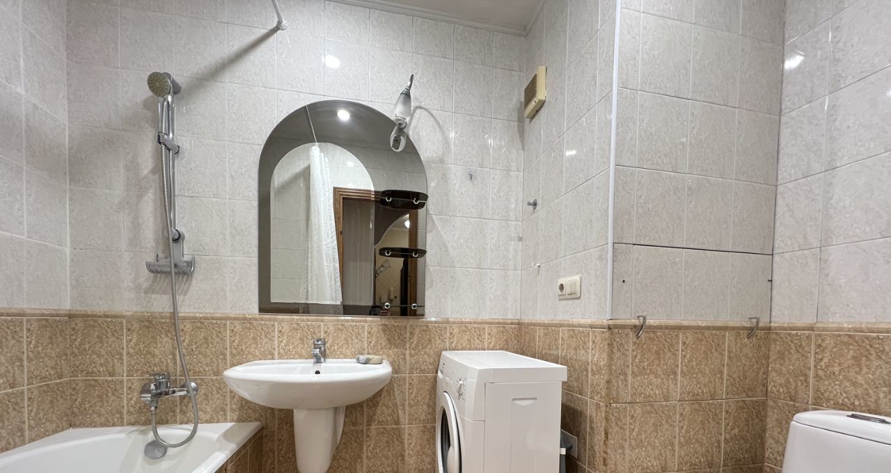 Сдается двухкомнатная квартира с хорошим ремонтом. На полу плитка и паркетная доска, окна ПВХ. Встроенная кухня, холодильник, духовой шкаф, варочная панель, посудомоечная машина, стол обеденный, стулья, полы с подогревом, ТВ. Санузел совмещенный, в плитке, стиральная машина автомат. В спальне двуспальная кровать, угловой шкаф. В зале диван, ТВ, камод, тумба под ТВ, стеллажи, кондиционер. В прихожей встроенный шкаф-купе. На длительный срок.