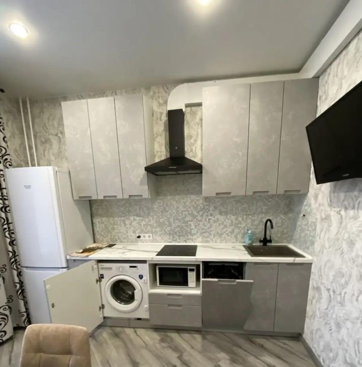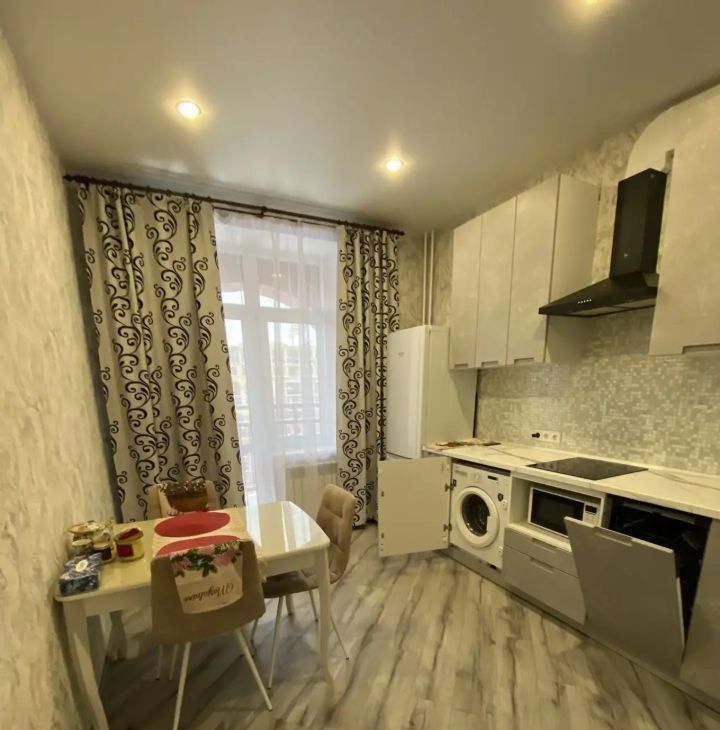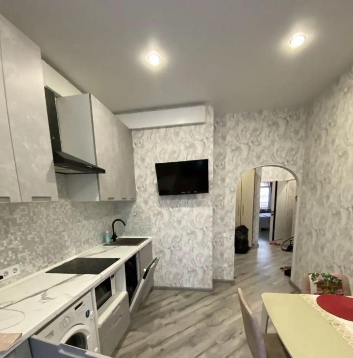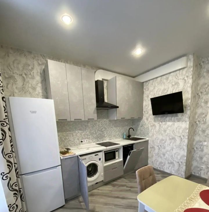 В квартире есть всё необходимое для комфортного проживания. Просторная кухня полностью оборудована — здесь установлены холодильник и посудомоечная машина. В гостиной и спальне имеется мебель, а также есть кондиционер и телевизор. В ванной комнате — удобная ванна и стиральная машина. Дополнительное удобство обеспечивает наличие лоджии и балкона.