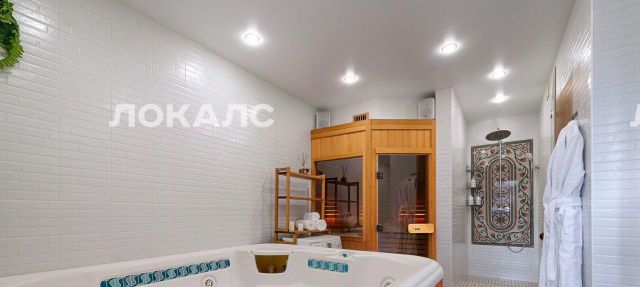 В квартире сделана зона СПА, с сауной и бассейном, а также тропический душ. Теплые полы в зоне кухни.