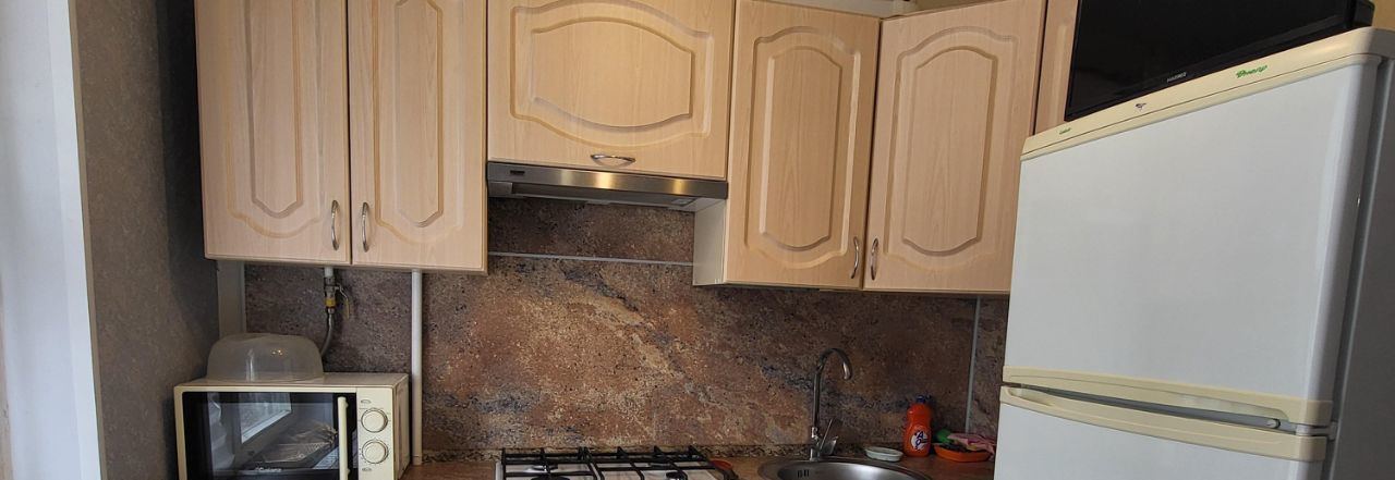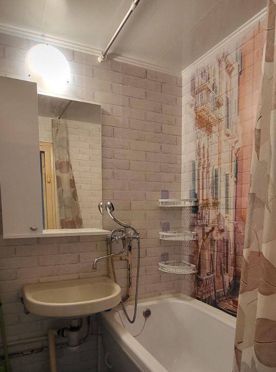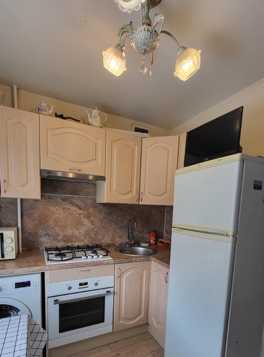Квартира готова к проживанию. В комнатах и на кухне есть необходимая мебель. Кухня площадью 7 кв. м оснащена холодильником, телевизором и стиральной машиной. Ванная комната оборудована ванной, санузел раздельный. В квартире есть балкон, где можно приятно провести время на свежем воздухе.
