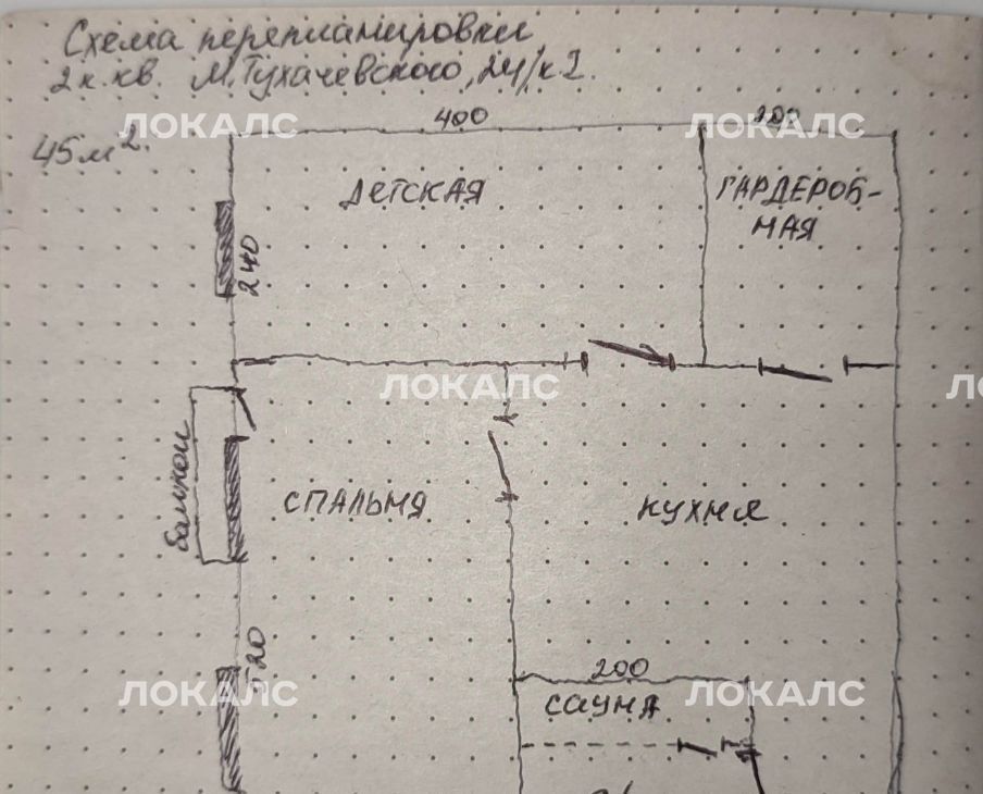 2-к кв. Москва ул. Маршала Тухачевского, 24К2 (45.0 м²)