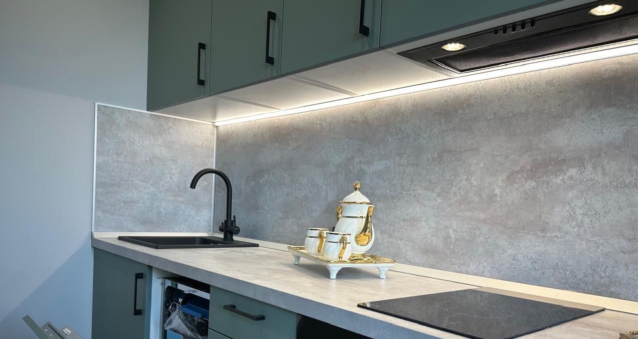 Техника: плита, духовой шкаф, микроволновая печь, телевизор, посудомоечная машина, стиральная машина.
