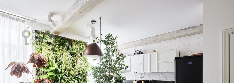 - Уникальное дизайнерское решение с фитостеной, создающей атмосферу свежести и уюта