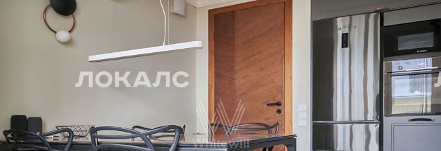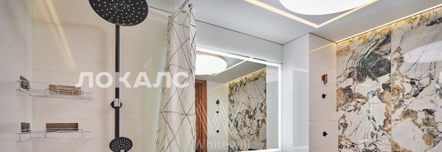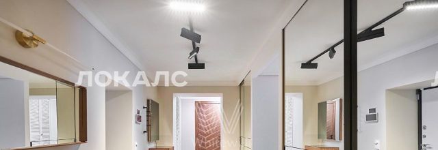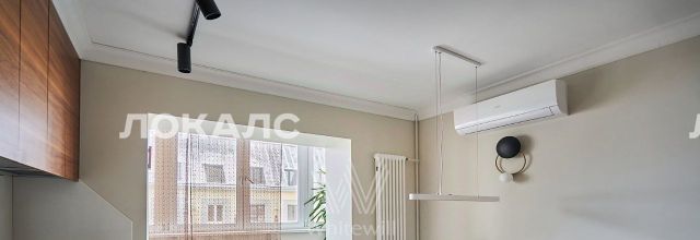 Квартира с 1-й спальней общей площадью 67 м² в 7-этажном доме недалеко от Чистых прудов. Выполнен дизайнерский ремонт в современном стиле, в отделке использован натуральный мрамор, древесина американского ореха, на полу покрытие из натурального дуба, в санузлах напольное покрытие из итальянского керамогранита. Квартира оборудована системой "умный дом", предусмотрены разные сценарии освещения.