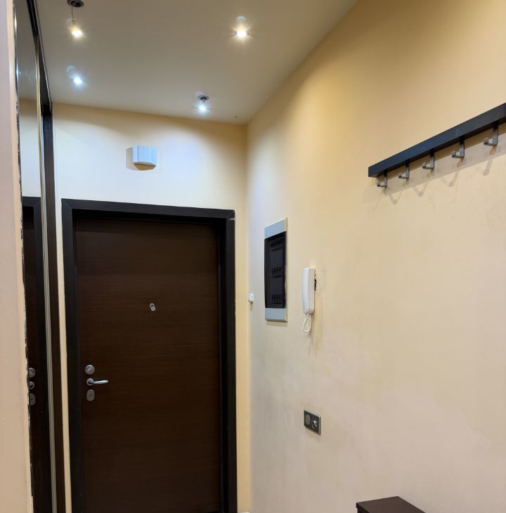 Квартира теплая, есть полы с подогревом и кондиционер. Очень много мест для хранения. Тихие соседи, хорошая шумоизоляция. Закрытый коридор на этаже. В комнатах много сценариев освещения.