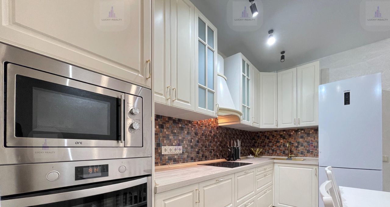 • Теплые полы везде, где плитка (санузлы, коридор, кухня, балкон). Имеется кондиционер, телевизоры, интернет. Кухонная зона оборудована всей необходимой встраиваемой техникой, кроме посудомоечной машины.