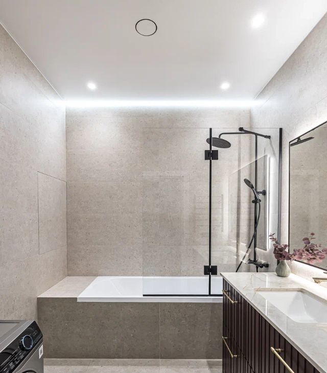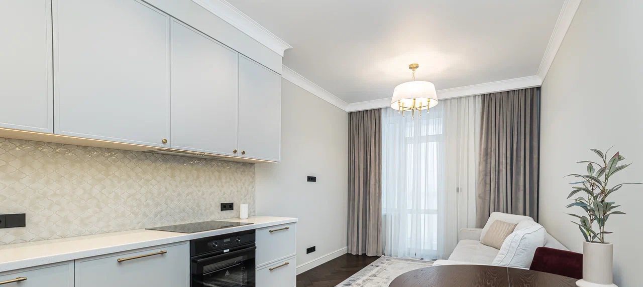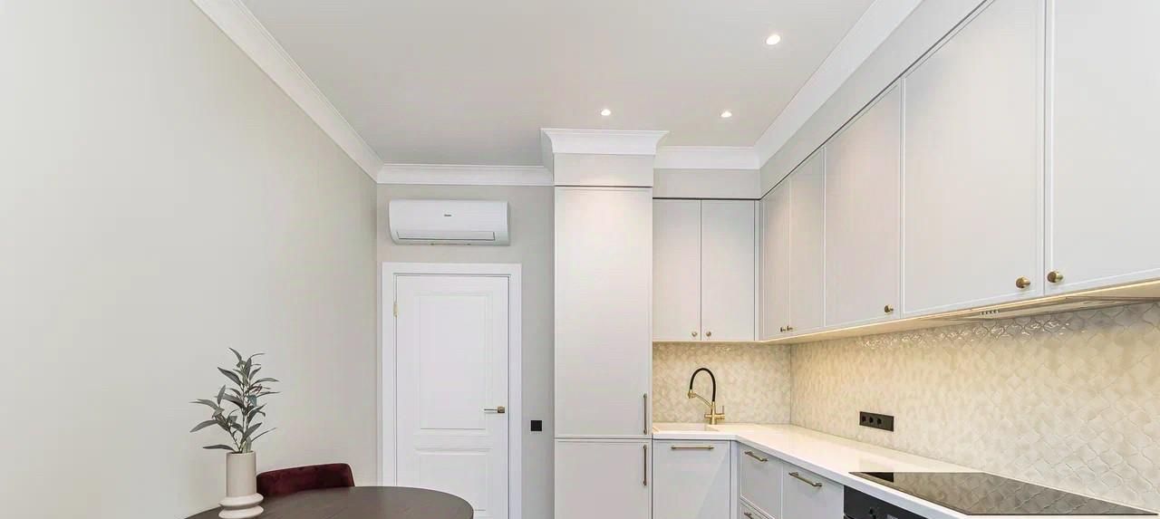 Квартира оборудована современной техникой: кондиционер, стиральная-сушильная машина, посудомоечная машина, много мест для хранения.