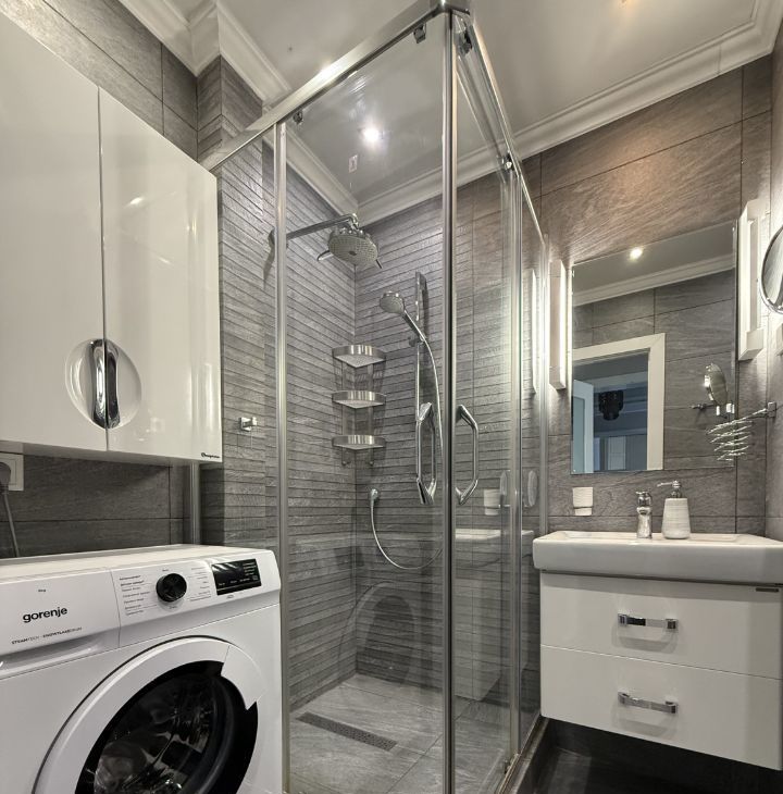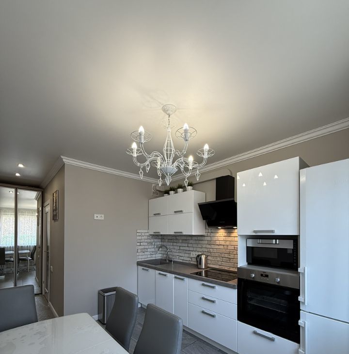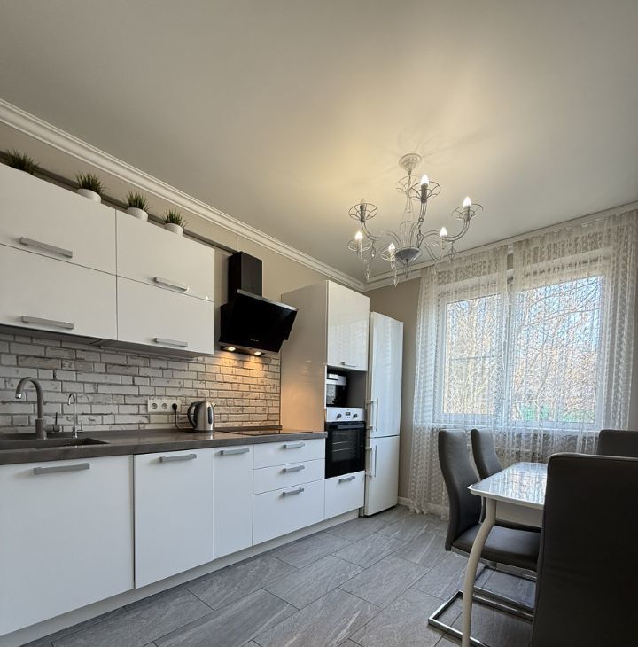 В квартире выполнен качественный дизайнерский ремонт. Изолированная спальня, просторная гостиная, полноценная кухня и совмещенный санузел. Есть вся необходимая мебель и техника, подключена посудомоечная машина, есть фильтр для воды. Облагороженный двор, свободный наземный паркинг.