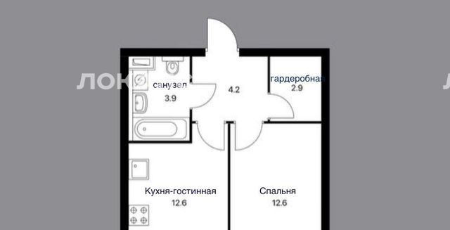 Спальня, кухня-столовая, гардеробная комната, санузел совмещен.