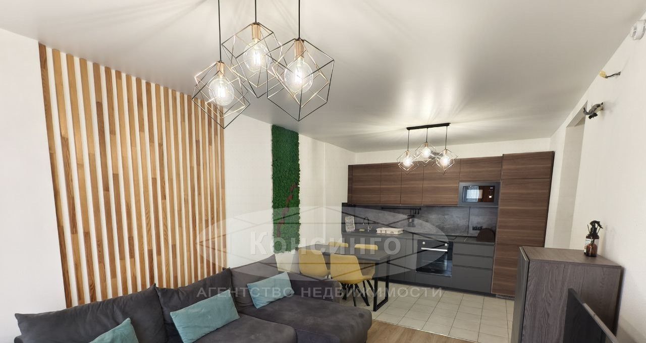 Арт. 134374099 Евротрёшка полностью укомплектована корпусной, мягкой мебелью и бытовой техникой, посудомоечной машиной, холодильником Samsung, электроплитой, духовым шкафом Candy, стиральной машиной Indesit, Smart TV, Wi-Fi.
