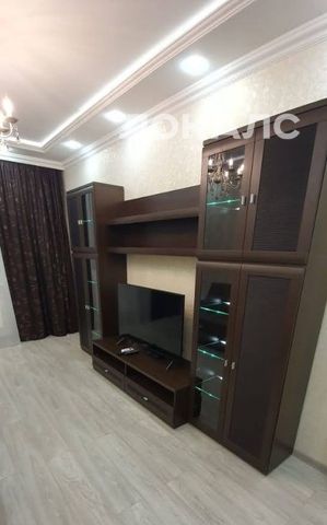 В квартире есть всё необходимое для комфортного проживания. На кухне установлена современная мебель и техника: холодильник, телевизор, посудомоечная машина и кондиционер. В гостиной и спальне также предусмотрена мебель, а в ванной комнате — ванна и стиральная машина. Для вашего удобства проведен интернет и установлен телевизор. Приятным дополнением является лоджия, где можно насладиться свежим воздухом.