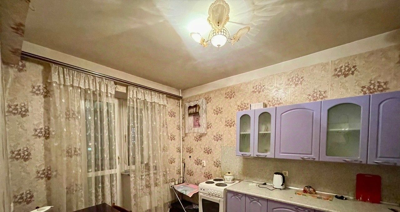Ремонт старый, но все в рабочем состоянии. В наличии вся необходимая мебель, включая кухонный гарнитур, а также крупная бытовая техника: холодильник и стиральная машина.