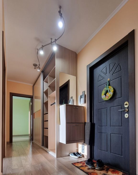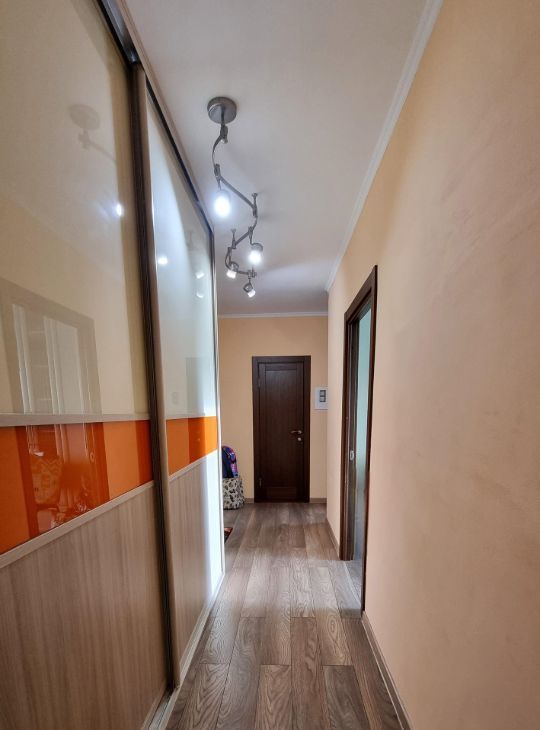 мебелерована и оборудована. Из техники: кондиционер в каждой комнате и в кухне, холодильник, посудомоечная машина, телевизоры, стиральная машина, проточный фильтр для воды, установлены система защиты от протечек, водонагреватель. Ванная комната оборудована большой ванной. Есть одна теплая (зимняя) лоджия, где можно расслабиться после рабочего дня. Для удобства жильцов проведён интернет, домофон.