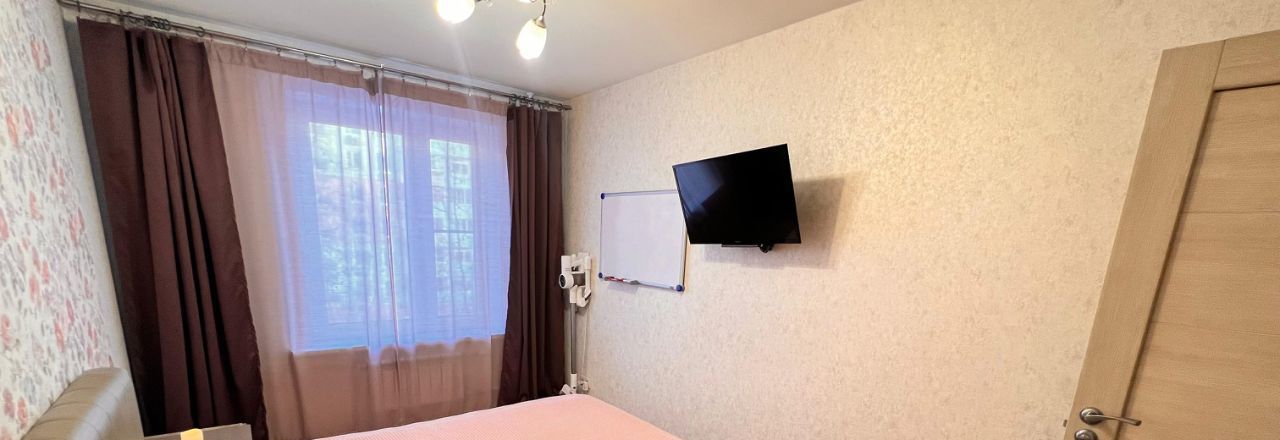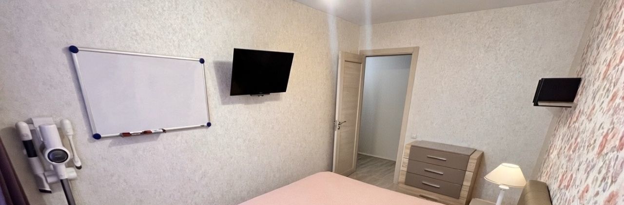 - Спальня: кровать с ортопедическим матрасом Askona (блок независимых пружин), комод и две прикроватные тумбочки, настенный телевизор Sony 32 дюйма