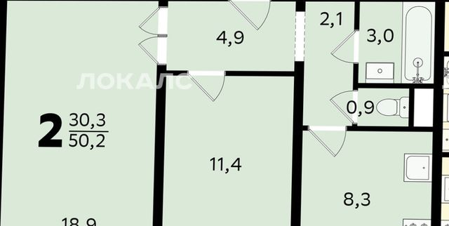 2-к кв. Москва ул. Мусоргского, 5К3 (50.4 м²)