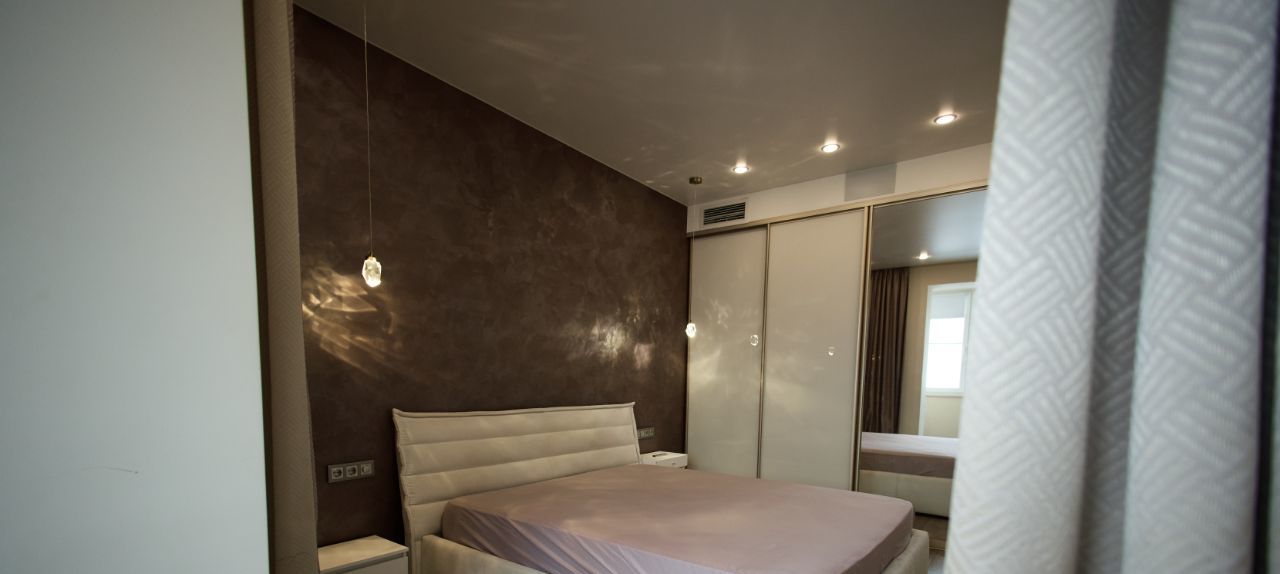 В квартире выполнен дизайнерский ремонт, что делает её особенно привлекательной для ценителей стильных интерьеров. Кухня и комната обставлены современной мебелью, обеспечивающей комфортное проживание.