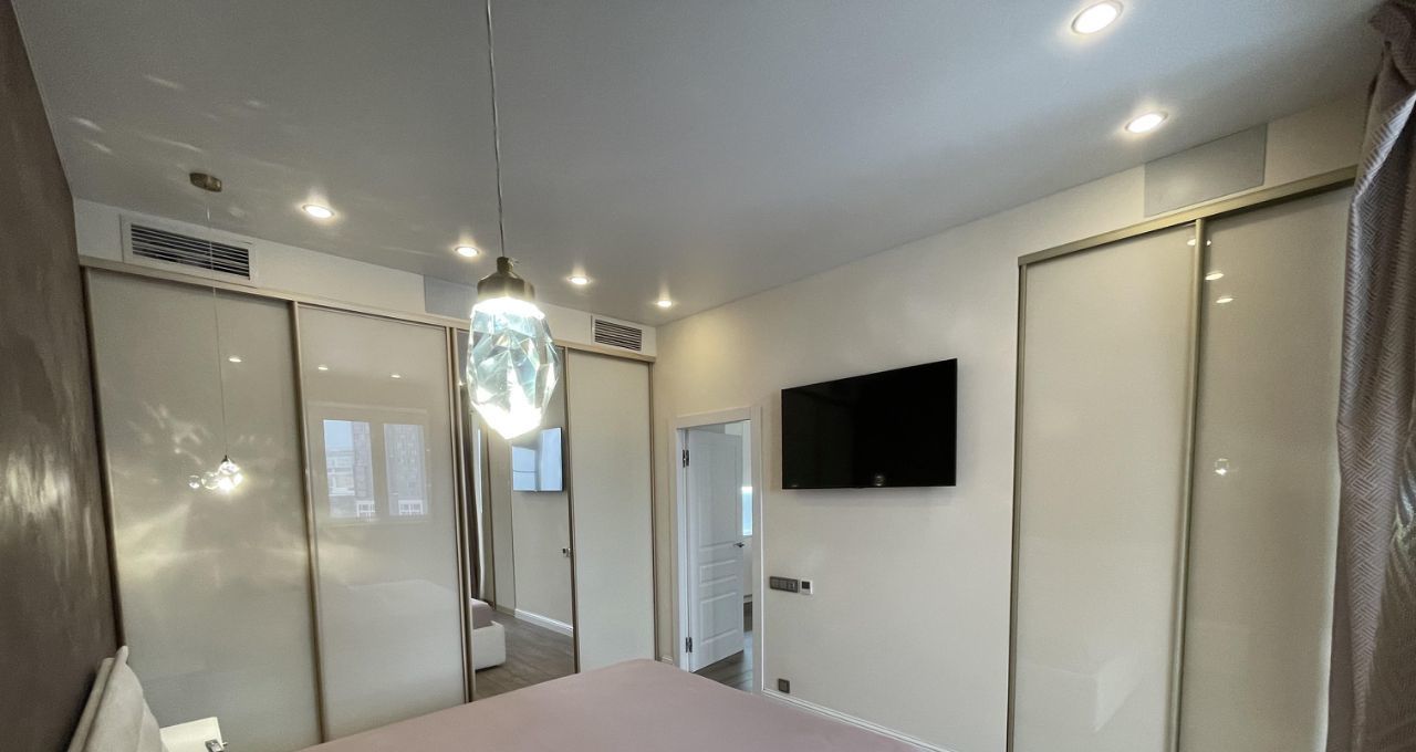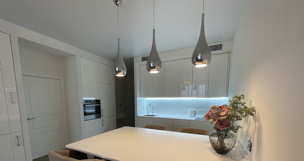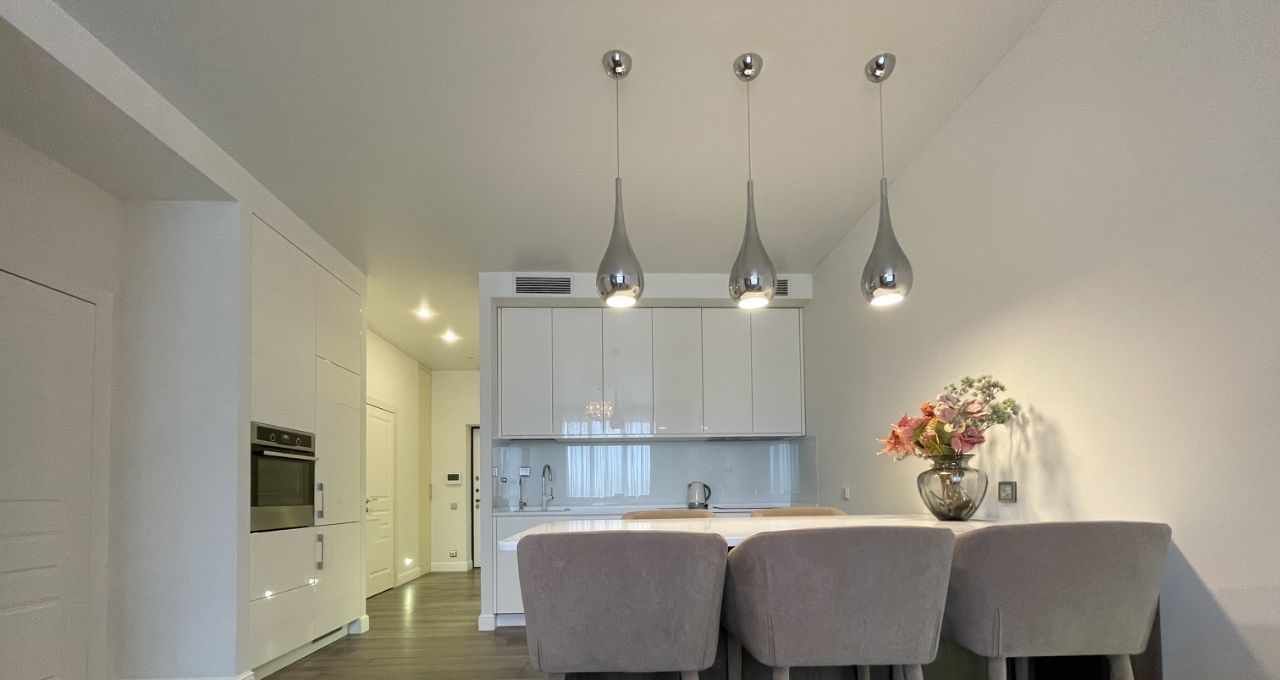 Общая площадь квартиры составляет 69 кв. м, из которых 18 кв. м — жилая площадь, а кухня радует своей внушительной площадью в 30 кв. м. Квартира расположена на 15 этаже 32-этажного дома, что обеспечивает прекрасный вид на город как со стороны улицы, так и со стороны двора. Высокие потолки в 3,1 метра создают ощущение простора и свободы.