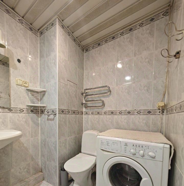 В квартире есть всё необходимое для проживания. В большой комнате раскладной диван, вместительный шкаф, компьютерный стол и офисное кресло, в спальне двуспальная кровать, прикроватные тумбочки, два шкафа. Бытовая техника: холодильник, электрическая плита, стиральная машина.