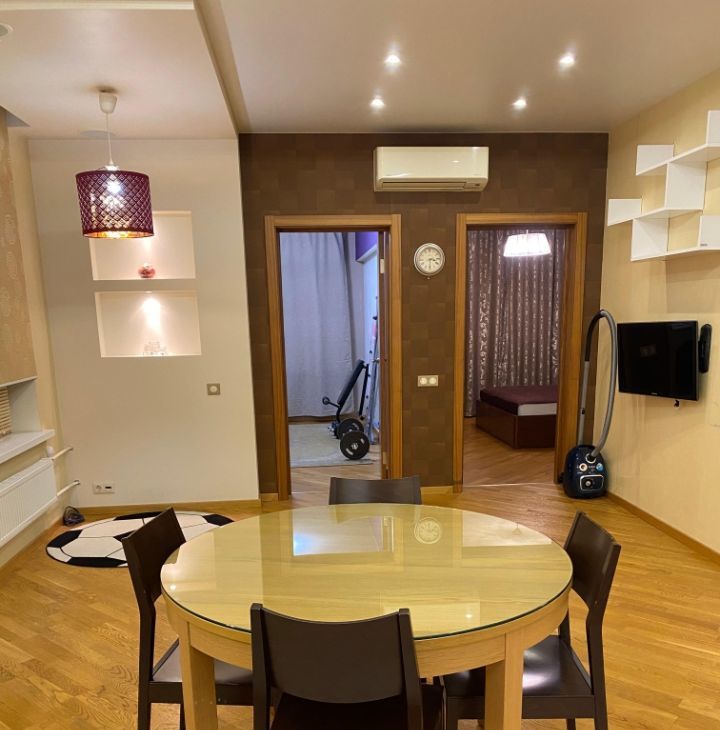 Сдаётся отличная квартира с дизайнерским ремонтом в доме бизнес- класса по адресу: улица Народного ополчения дом 11. От м. Народное ополчение 7-10 минут пешком. Евро-трёшка. Две отдельные комнаты и большая кухня-гостиная. На кухне встроенный кухонный гарнитур со всей бытовой техникой, варочная панель индукционная, духовой шкаф, СВЧ печь, посудомоечная машина, стиральная машинка, холодильник. Вся техника премиальных брендов. Теплые полы в зоне кухни и санузла. Пол в квартире- паркетная доска. Гардеробная в прихожей, в кухне-гостиной и спальне установлены кондиционеры, интернет, телевизор в комнате и в кухне-гостиной. В квартире есть всё необходимое для проживания. Сдаётся впервые. Удобная транспортная доступность. Рядом детские сады и школы. В пешей доступности метро Народное ополчение 10 минут спокойным шагом. Отдельно оплачиваются счётчики (вода, электричество). Оперативный показ.