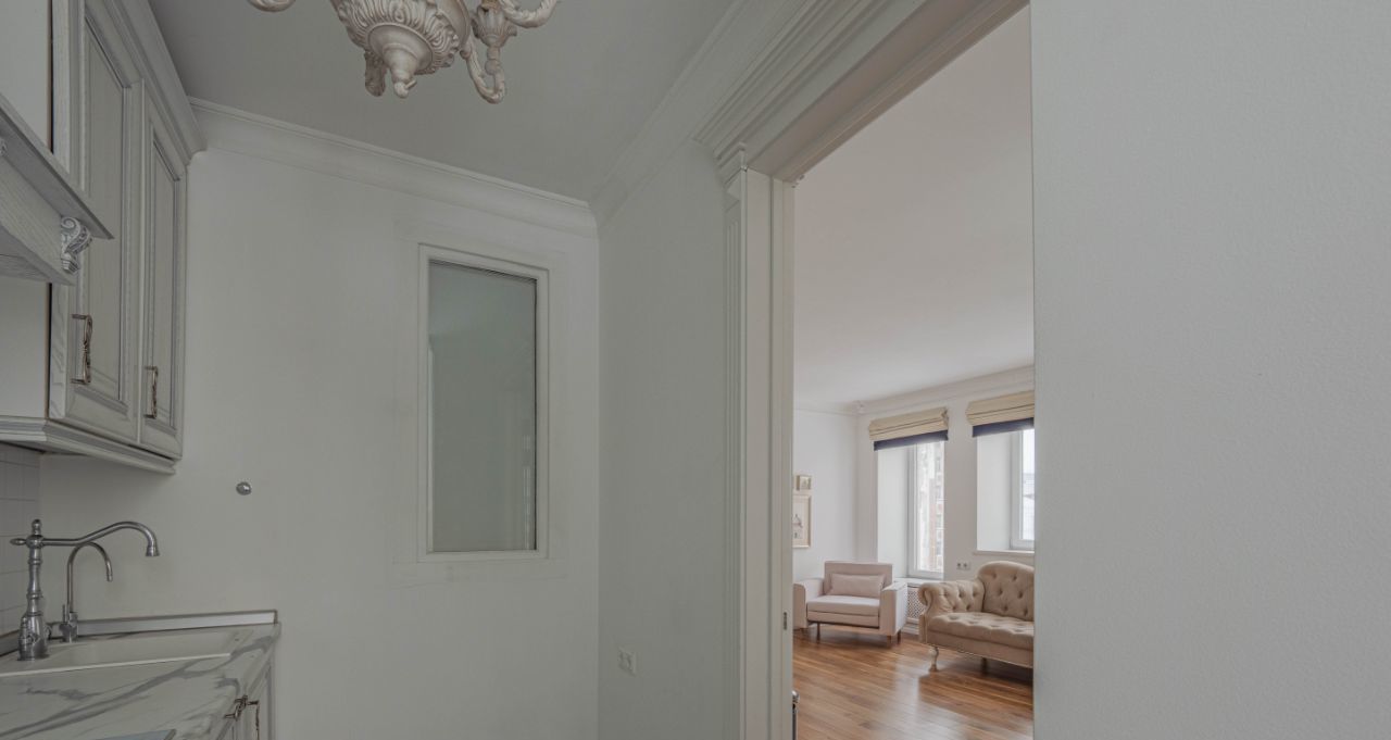 **Описание квартиры:** изолированная спальня, гостиная, совмещённый санузел, постирочная, кухня, прихожая. Много окон, много света, высокие потолки. Ремонт по стилистике, качеству исполнения вас удовлетворит. Есть вся необходимая техника, правда, холодильник небольшой, но если вы и так не были заядлым кулинаром, вас это не смутит.