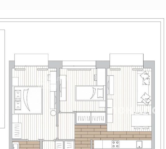 Функциональная планировка: кухня-гостиная, и две спальни, санузел с ванной.