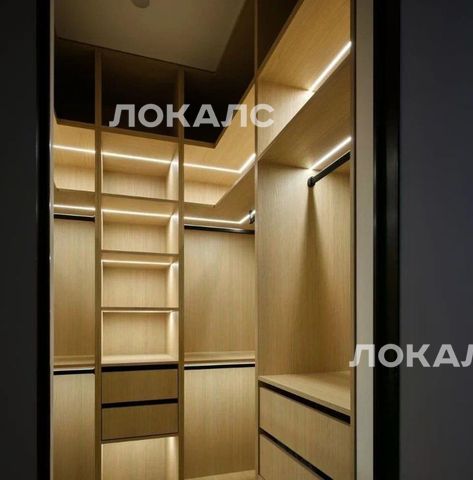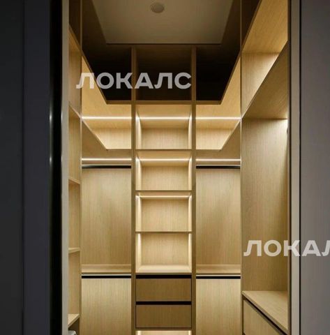 — Просторная гардеробная с большим количеством мест для хранения и подсветкой