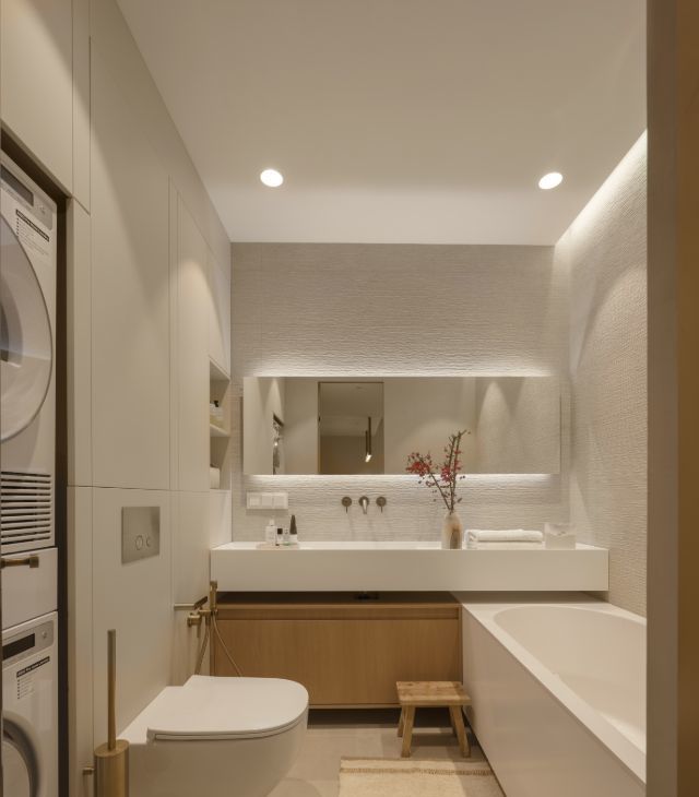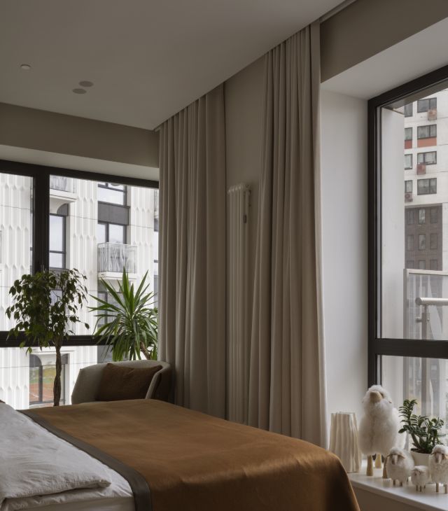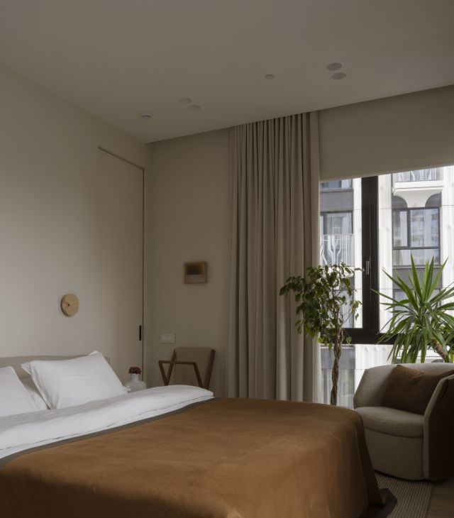 Грамотно продуманная планировка с просторной кухней-гостиной (30 м²), двумя санузлами (один с душевой, второй с ванной), мастер-спальня, переходящая в просторную гардеробную, в которой предусмотрены системы хранения Porro, сантехника премиального итальянского бренда Zuchetti, двери скрытого монтажа от Sofia doors. Предметы мебели от ведущих итальянских брендов, свет от Henge, диван - Poliform, обеденный стол из массива - Riva, кровать - Ivano Redaelli, комод - Rimadessio - эти знаковые предметы мебели делают интерьер уютным и наполненным, в нем хочется жить.