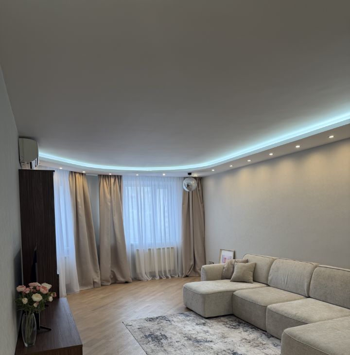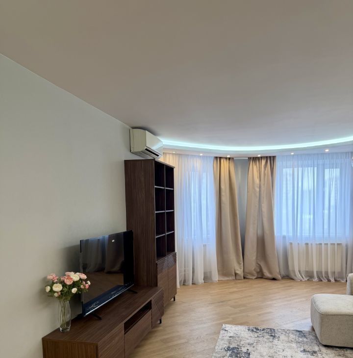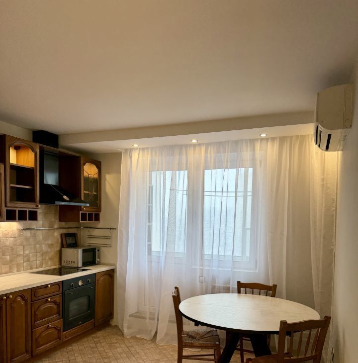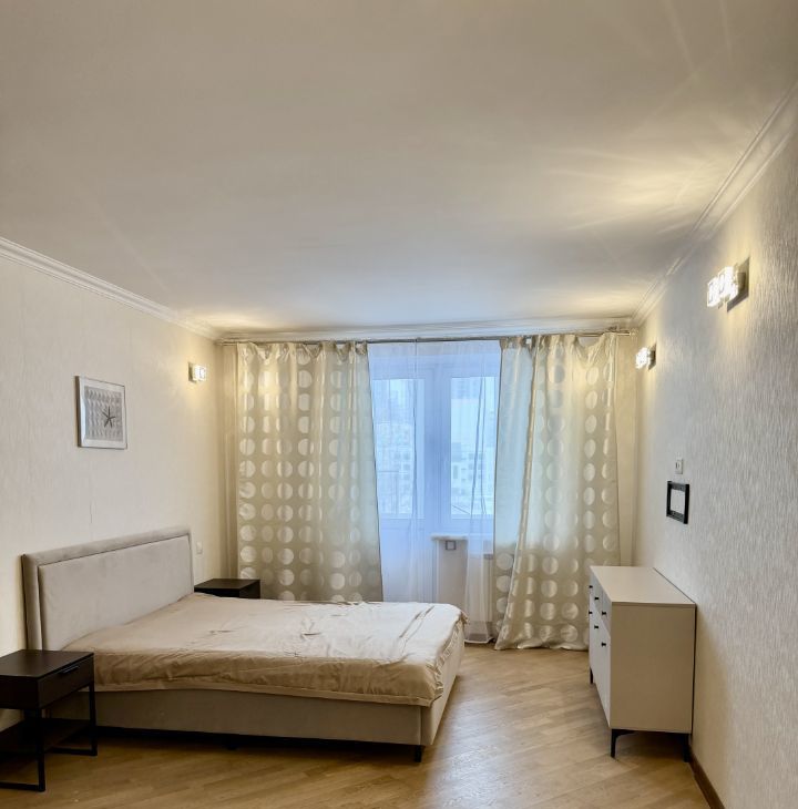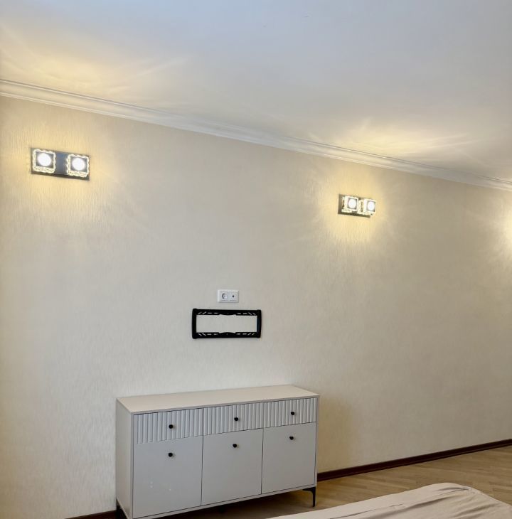 В феврале 2026 года в квартире выполнен косметический ремонт. Вся мебель и сантехника новая. Кухня просторная, площадью 16 кв.м., оборудована всем необходимым: холодильник, плита, посудомоечная машинка, микроволновая печь, кондиционер и стиральная машина.