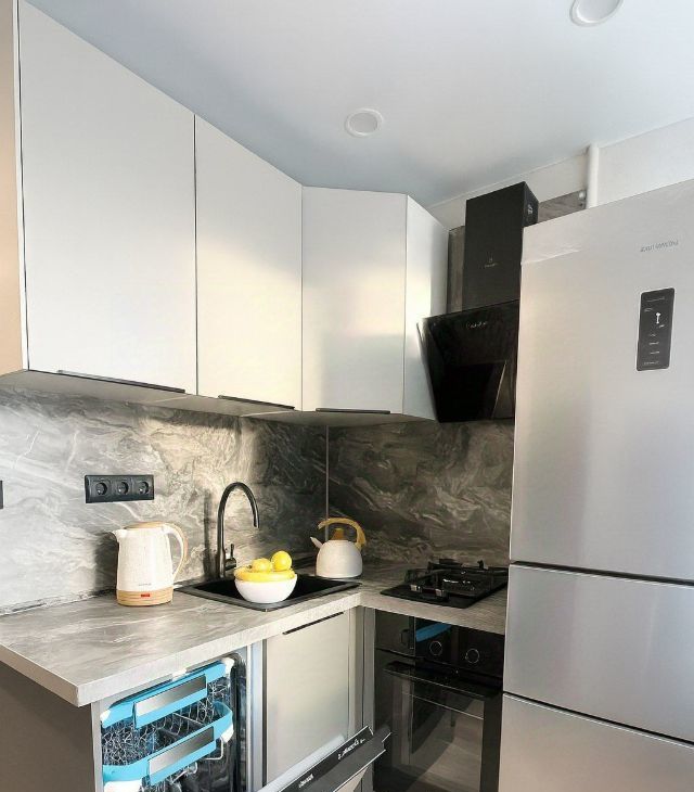 • Уютная кухня: Полностью оборудована для ваших кулинарных шедевров: холодильник, плита с духовкой, вытяжка и незаменимая посудомоечная машина