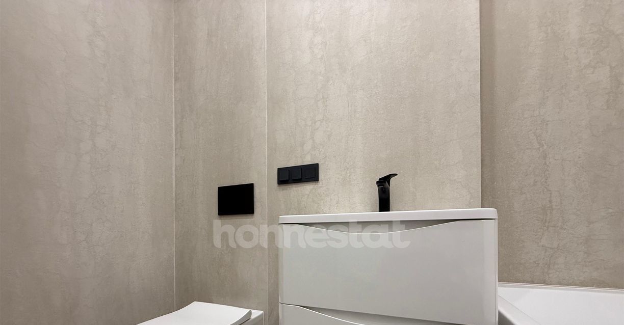 В квартире выполнен дизайнерский ремонт, что создает атмосферу уюта и стиля. У вас будет два совмещенных санузла, один из которых оборудован ванной, а другой — душевой кабиной. Из техники в квартире есть кондиционер, холодильник и посудомоечная машина. Мебели нет, поэтому вы сможете обустроить пространство на свой вкус. Окна выходят на улицу, обеспечивая хороший уровень естественного освещения.