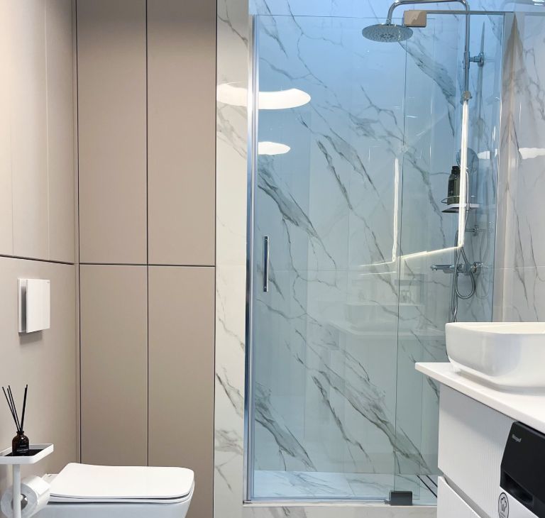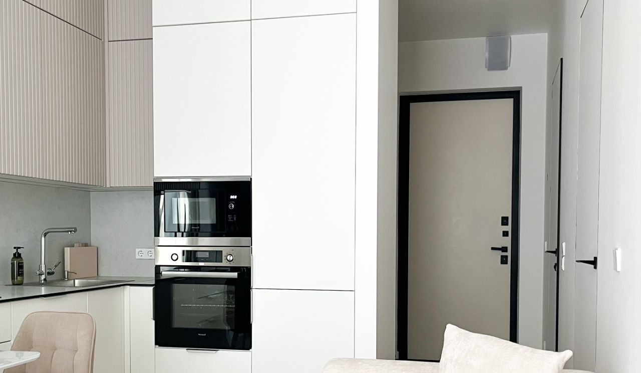 Квартира оснащена инвертерной стиральной машиной со встроенной функцией сушки, которая избавит вас от развешивания белья.