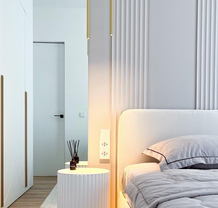 Спальня со значительным местом для хранения обеспечит идеальный порядок и комфорт. 3 вида подушек с разной опцией высоты и жесткости также будут всегда в доступности в квартире .