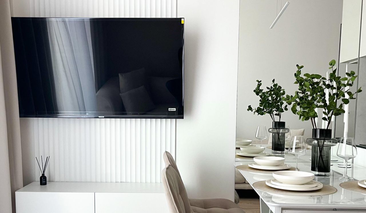 В квартире установлено SMAT TV, кондиционер для поддержания идеального микроклимата, и высокоскоростной интернет.