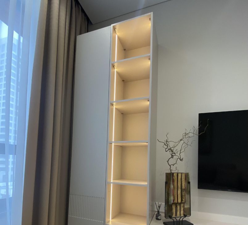 Продуманы места для хранения, два вместительных шкафа в коридоре и спальне. Из техники: холодильник, посудомоечная машина, плита и духовой шкаф, телевизор в гостиной, кондиционер. Шторы Блэк аут.