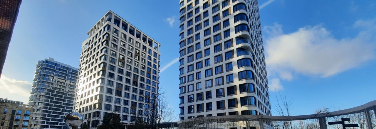 Вся инфраструктура есть: кофейни и магазины на первых этажах ЖК, через дорогу расположена школа, метро в 10-ти минутах ходьбы, рядом есть спорткомплекс.