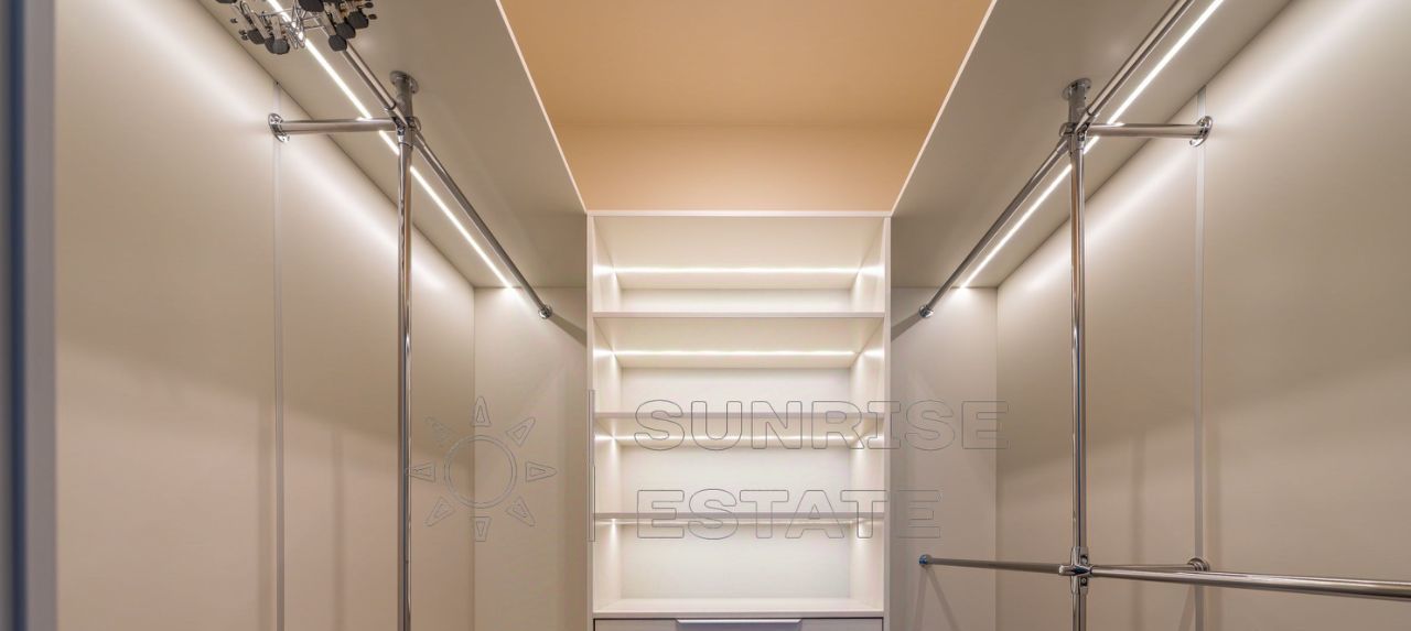 - Гардеробная + Встроенные шкафы (в спальне + в гостиной) + Антресольные шкафы и обувница в прихожей - отвечают за хранение ваших вещей