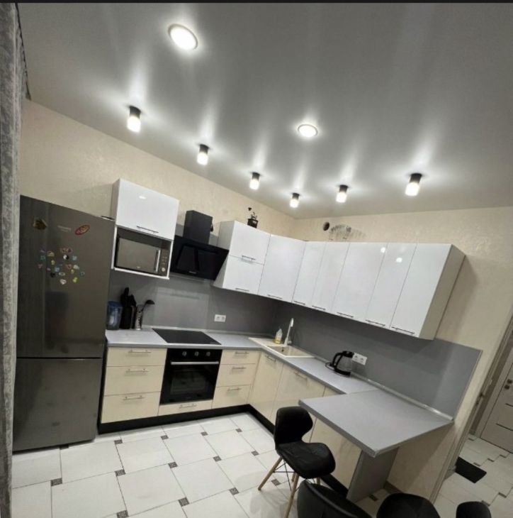 Кухня площадью 11 м² оборудована всей необходимой техникой, включая холодильник и микроволновую печь. В гостиной установлен телевизор и удобный диван, а также вместительные шкафы для хранения вещей. В спальнях установлены кровати и шкафы.