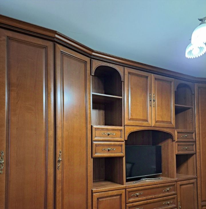 На кухне и в комнатах установлена мебель. Также имеется вся необходимая техника: холодильник, посудомоечная машина, телевизор, стиральная машина, микроволновая печь.
