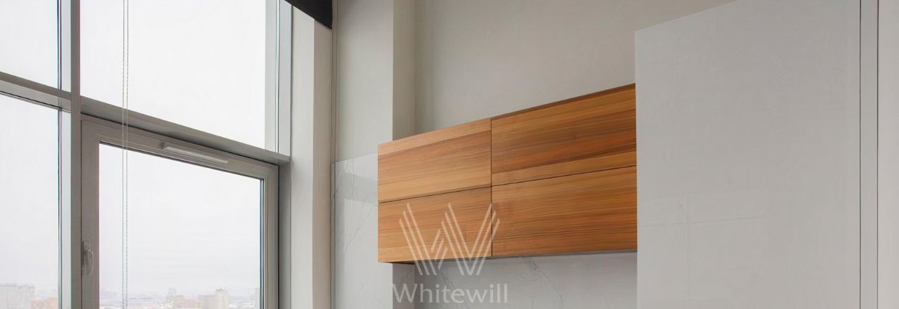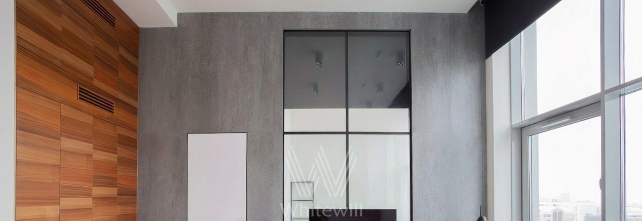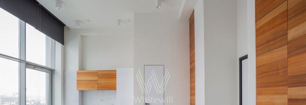 Видовые апартаменты с 1-й спальней общей площадью 43 м² в комплексе The Book на Новом Арбате. Выполнен светлый ремонт в современном стиле. В отделке использовано натуральное дерево и крупноформатный керамогранит. Панорамные окна в сочетании с потолками высотой 4,5 метра наполняют пространство светом.