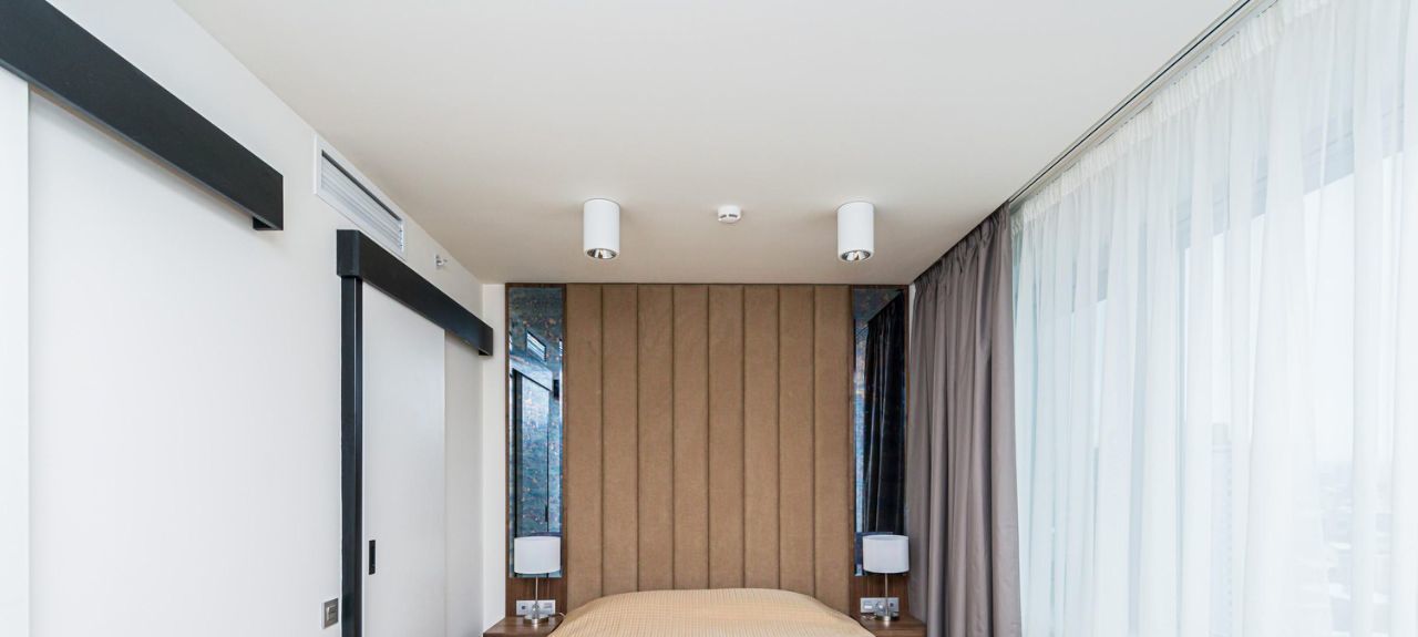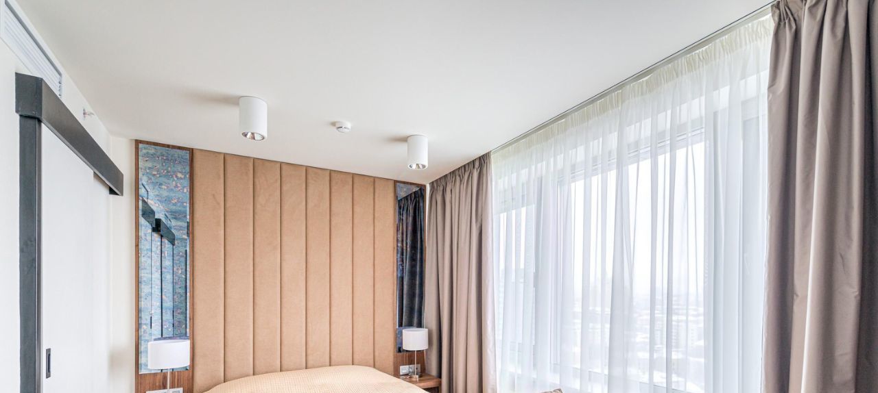 - Из удобных деталей - шторы с электроприводом: можно управлять светом в комнате одной кнопкой.