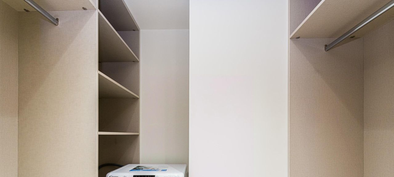 Отдельное помещение со стиральной машиной, не занимает жилое пространство