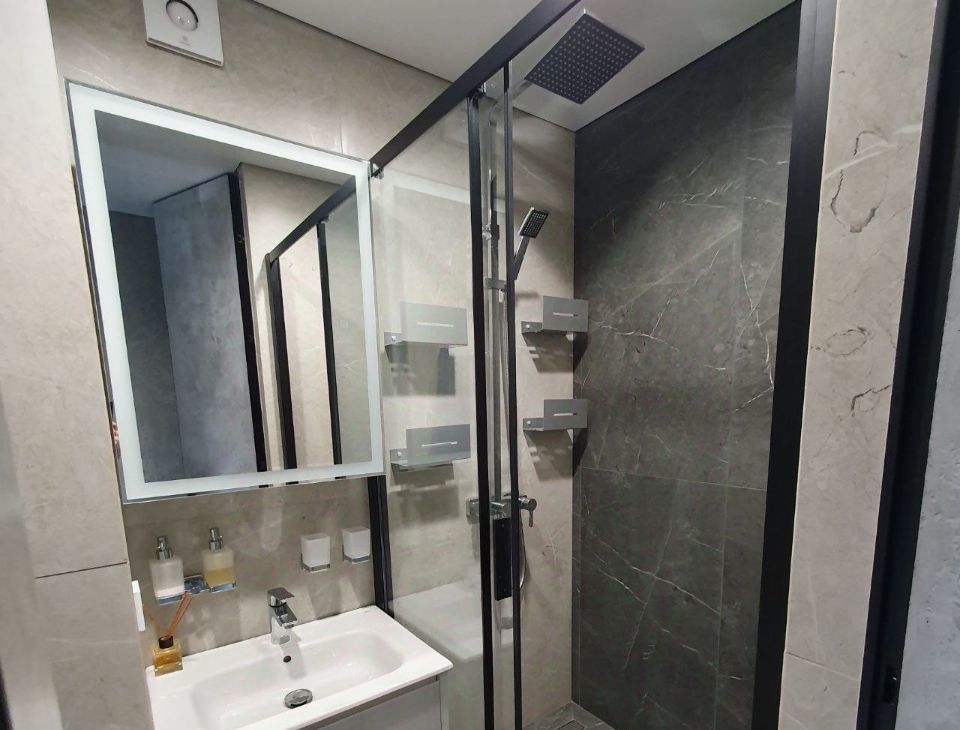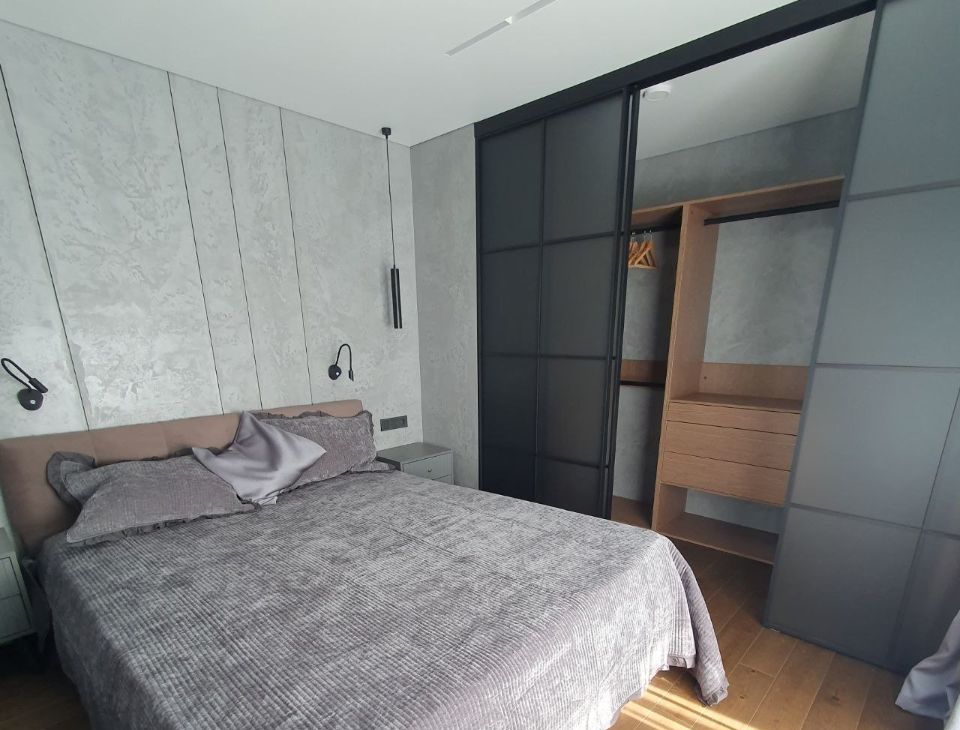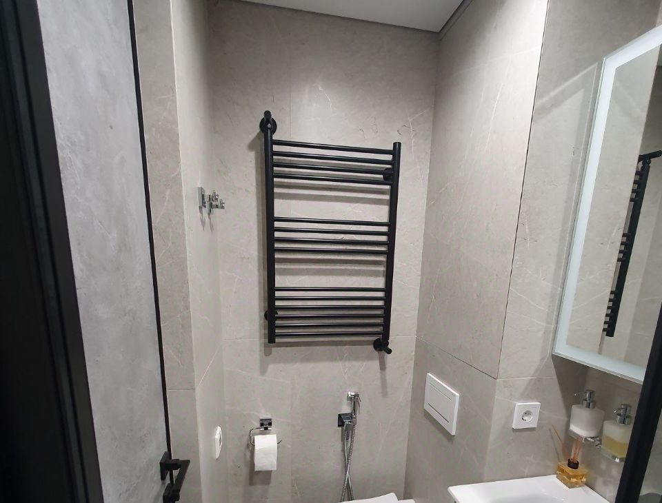 Квартира с качественным ремонтом, который собственник делал для себя, с большим вниманием к деталям и комфорту. В отделке использованы натуральные и премиальные материалы: пол из натурального дерева, микробетон на стенах, керамогранит в ванной, встроенный карниз, скрытые плинтусы с подсветкой, качественная фурнитура и стильные аксессуары.