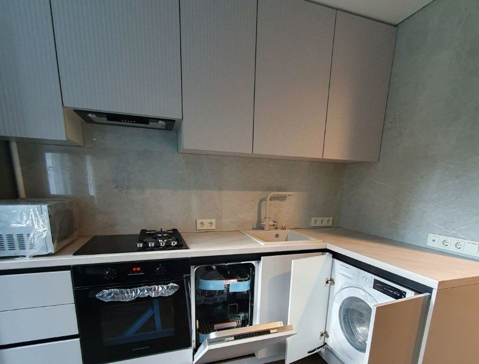 Вся техника в отличном состоянии: холодильник, стиральная машина, посудомоечная машина, духовой шкаф, телевизор. На момент заезда предыдущего арендатора всё было новым, при этом квартира использовалась минимально.