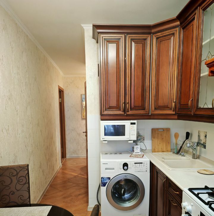 Хорошее состояние, аккуратный косметический ремонт. Сантехника в хорошем состоянии. Разноуровневый свет на кухне и в комнатах. Тихий двор.