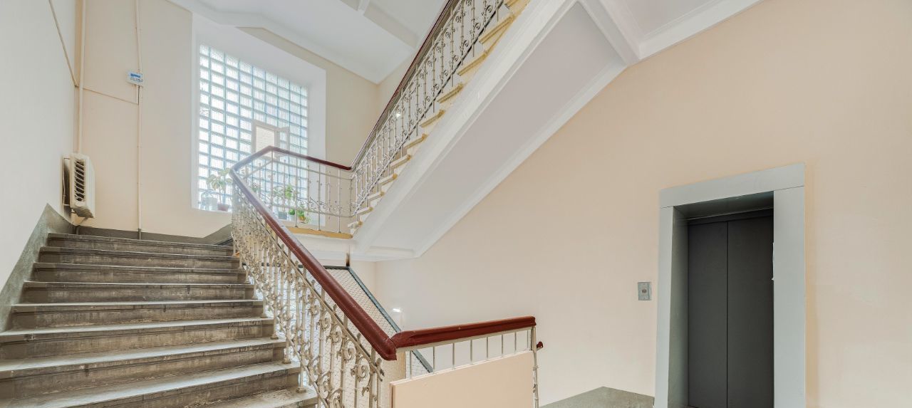 Дореволюционный дом. Чистый подъезд. Лифт. Огороженная территория - въезд через шлагбаум. Парковка стихийная во дворе дома, рядом есть платный паркинг.