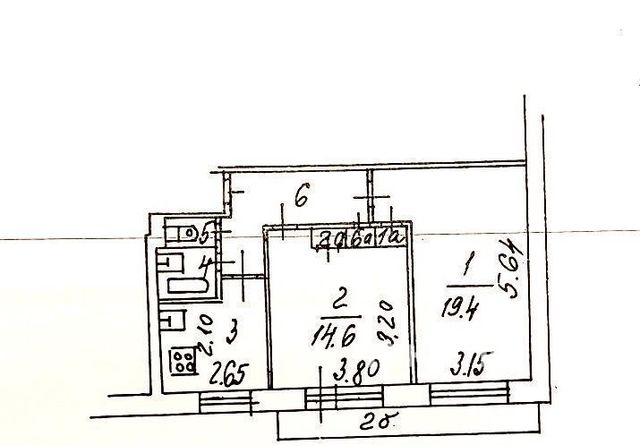Общая площадь 51,3 кв.м, изолированные комнаты 19,4 кв.м и 14,6 кв.м, кухня 6,3 кв.м, большой балкон на 2 комнаты, три встроенных шкафа.