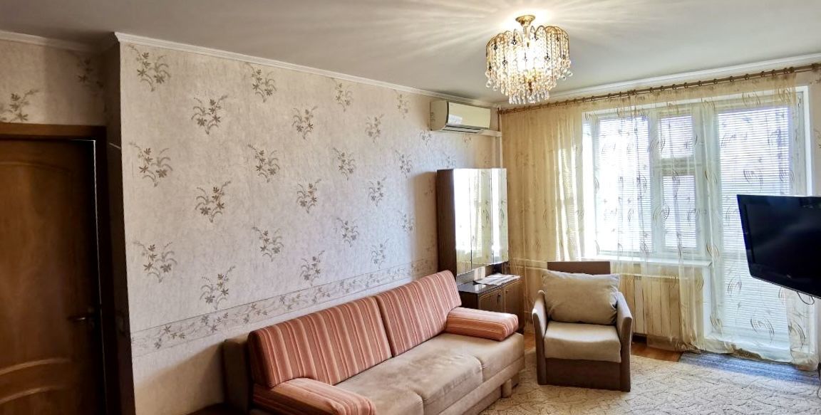 В квартире сделан косметический ремонт. В кухне есть необходимая мебель, установлены кондиционер, холодильник и стиральная машина.